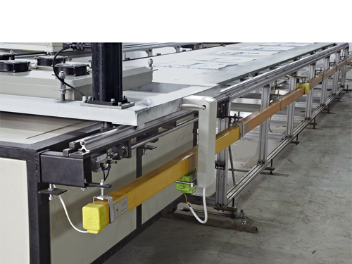 6、兩條臺(tái)板可循環(huán)印花,由第一條臺(tái)板自動(dòng)轉(zhuǎn)換到第二條,收鋪料不需要等待,節(jié)約時(shí)間從而提高印花效率。單臺(tái)板往返運(yùn)作或雙臺(tái)板循環(huán)操作均可以在電腦控制屏上自由設(shè)置,并可根據(jù)客戶廠地而設(shè)計(jì)運(yùn)行長(zhǎng)度。